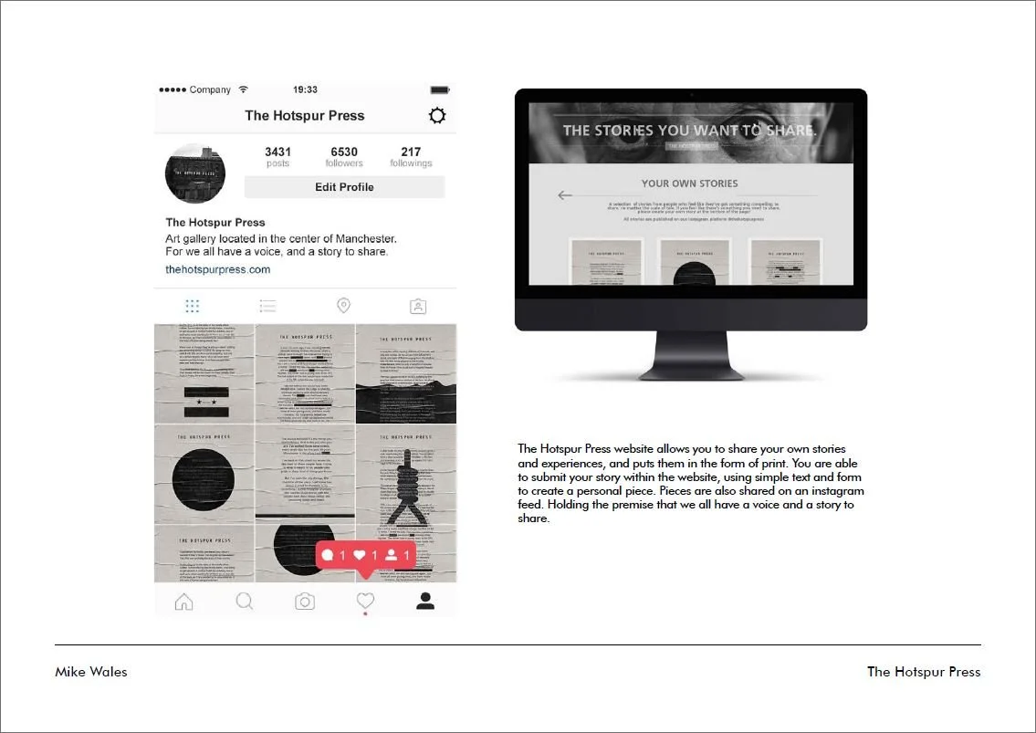 A CONCEPTUAL GALLERY BASED IN MANCHESTER, WITHIN THE HALLS OF THE OLD PRINTING BUILDING, THE HOTSPUR PRESS. USING TRADITIONAL PRINTING METHODS TO BRING TOGETHER TANGIBLE LIVES.